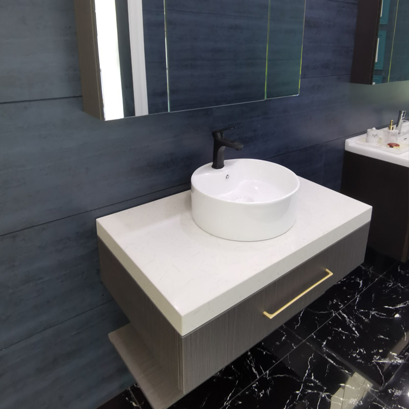 Digemari oleh golongan minimalis, meja solek bilik mandi kecil melamin dengan sinki ini sesuai untuk ruang bilik mandi dan rumah kecil. Dan meja solek bilik mandi dua sinki boleh disesuaikan. Ia boleh direka mengikut keperluan ke dalam warna dan gaya kegemaran pelanggan. Jika anda sedang mencari meja solek bilik mandi yang berfungsi padan dengan ruang kecil, ini pastinya pilihan terbaik anda.